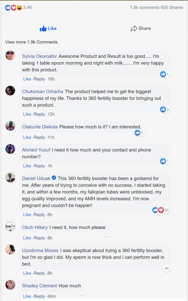 In Nigeria, the pressures of modern life, environmental factors, and even diet can take a toll on a man’s reproductive health. 360 Fertility Booster has been specially formulated to address these challenges. It’s affordable, accessible, and most importantly, it works. Take control today, and take the first step towards the family you’ve always wanted.